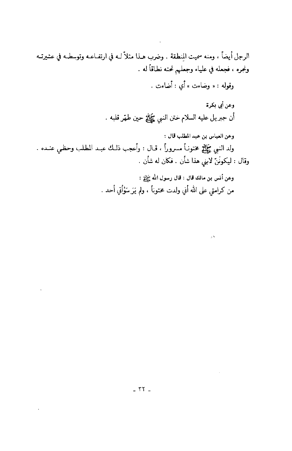 وعن العباس بن عبد المطلب قال: ولد النبي صَلَّى اللهُ عَلَيْهِ وَسَلَّمَ مختوناً مسروراً، قال: وأعجب ذلك عبد المطلب وحظي عنده. وقال: ليكونن لابني هذا شأن. فكان له شأن.