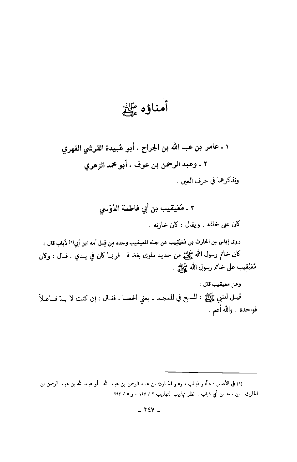 أمناؤه صَلَّى اللهُ عَلَيْهِ وَسَلَّمَ