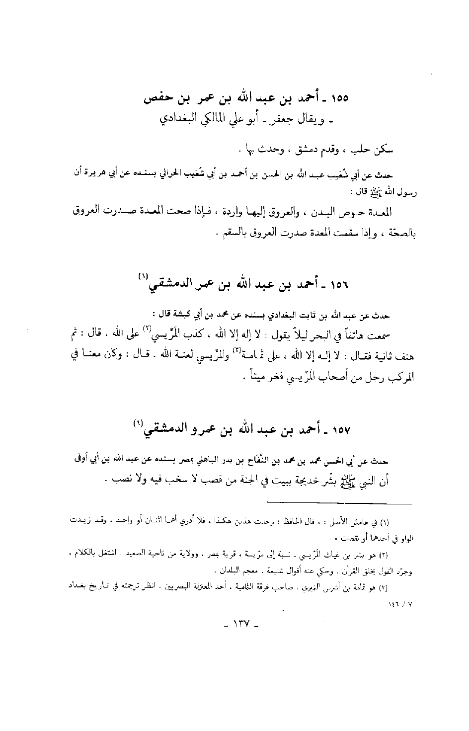 حدث عن أبي شعيب عبد الله بن الحسن بن أحمد بن أبي شعيب الحراني بسنده عن أبي هريرة أن رسول الله صَلَّى اللهُ عَلَيْهِ وَسَلَّمَ قال: المعدة حوض البدن، والعروق إليها واردة، فإذا صحت المعدة صدرت العروق بالصحة، وإذا سقمت المعدة صدرت العروق بالسقم.