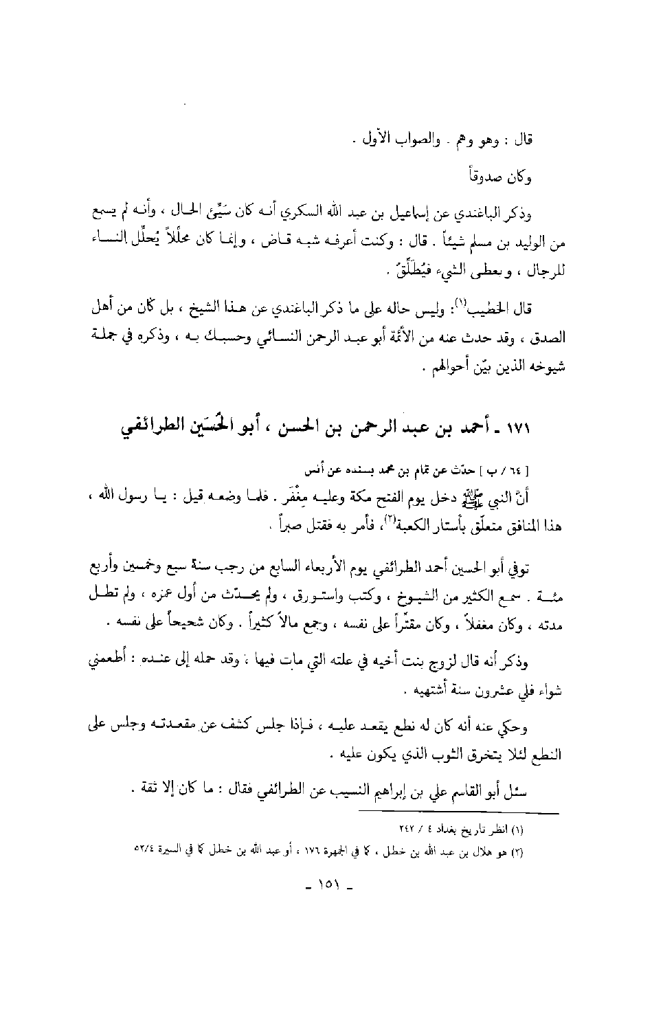 سئل أبو القاسم علي بن إبراهيم النسيب عن الطرائفي فقال: ما كان إلا ثقة.