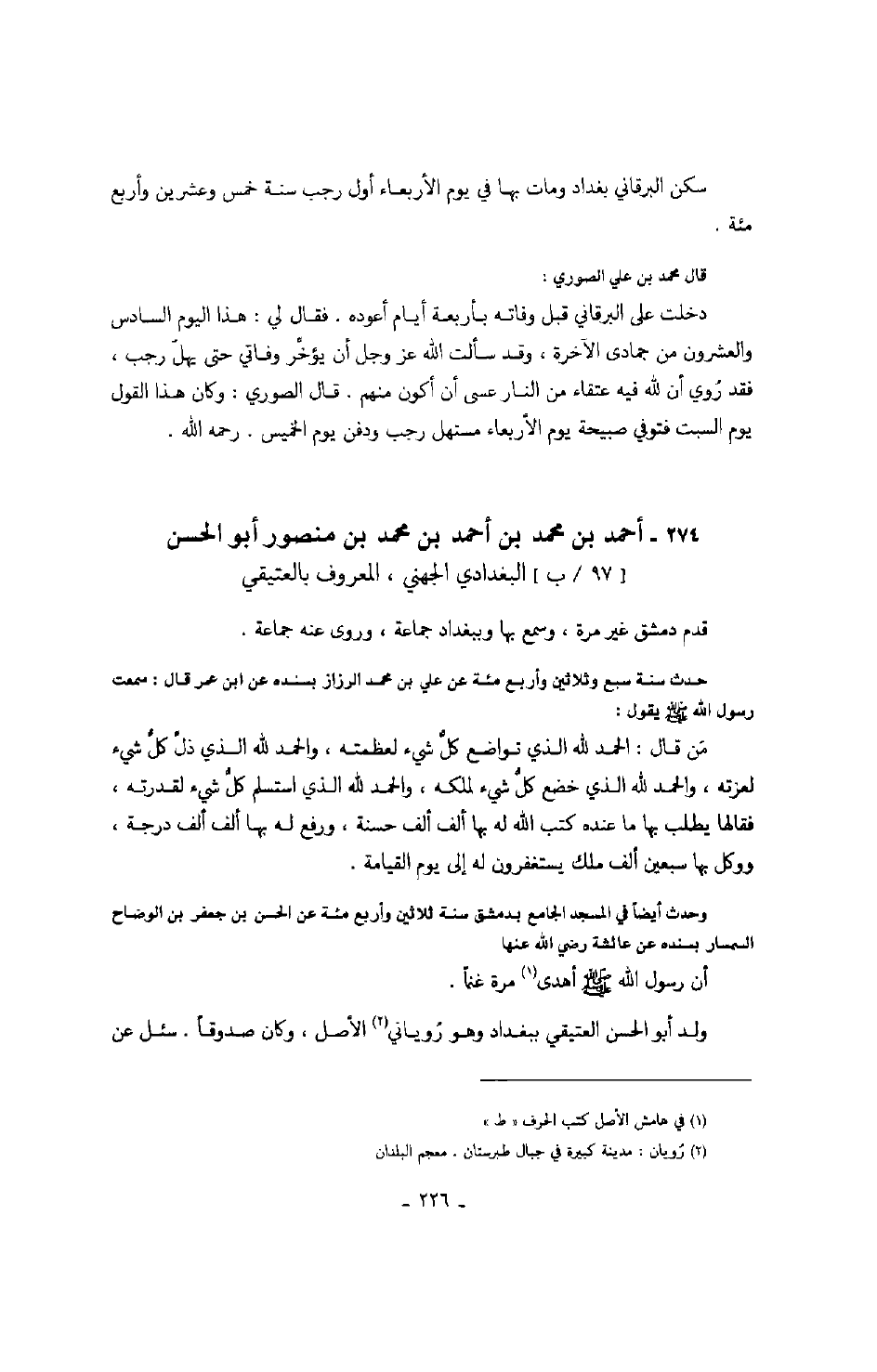 ابن منصور أبو الحسن البغدادي الجهني، المعروف بالعتيقي قدم دمشق غير مرة، وسمع بها وببغداد جماعة، وروى عنه جماعة.