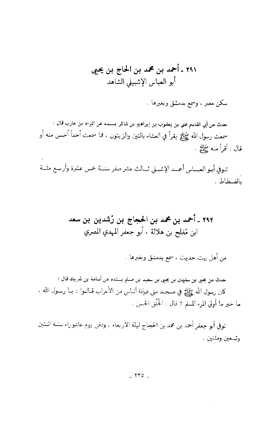 حدث عن يحيى بن سليمان بن يحيى بن سعيد بن مسلم بسنده عن أسامة بن شريك قال: كان رسول الله صَلَّى اللهُ عَلَيْهِ وَسَلَّمَ في مسجد منى فإذا أناس من الأعراب قالوا: يا رسول الله، ما خير ما أوتي المرء المسلم؟ قال: الخلق الحسن.