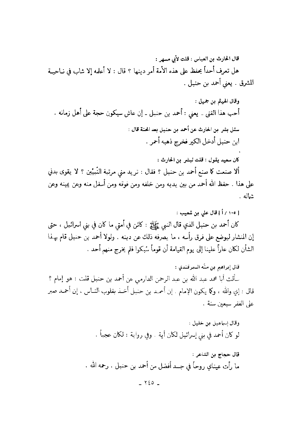سئل بشر بن الحارث عن أحمد بن حنبل بعد المحنة قال: ابن حنبل أدخل الكير فخرج ذهبه أحمر.