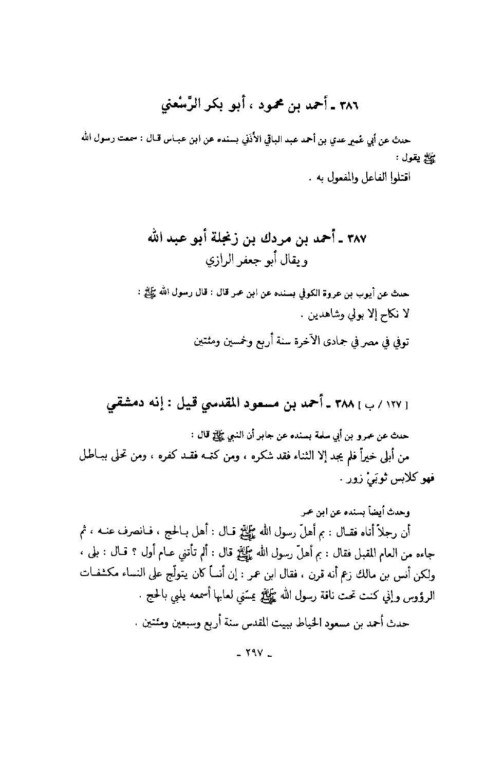 ابن أوفى بن خارجة بن حمزة بن النعمان صاحب رسول الله صَلَّى اللهُ عَلَيْهِ وَسَلَّمَ أبو العباس العذري حدث عن أحمد بن عبد الله الدمشقي بسنده عن السليط بن سبيع وكان من بني عامر قال: كنت تاجراً، وكان أكثر تجارتي في البحر، فركبت من ذلك إلى بلاد الصين فأتيت على راهب من رهبان الصين كان على دين عيسى بن مريم وكان مؤمناً فناديته: يا راهب، فأشرف من صومعته فقال: ما تشاء؟ قلت: من تعبد؟ قال: الذي هو خلقني وخلقك، قلت: يا راهب فعظيمٌ هو؟ قال: نعم يا فتى، عظيم في المنزلة، قد حوت عظمته كل شيء، لم يحلل بنفسه في الأشياء فيقال منها، ولم يعتزل فيقال ناءٍ عنها. قلت: يا راهب، فأين الله من محل قلوب العارفين؟ قال: يا فتى، إن قلوب العارفين لا تعزب عن الله بعد إذ علم أنها إليه مشتاقة. قلت: يا راهب، فما الذي قطع بالخلق عن الله؟ قال: حب الدنيا، لأنها أصل المعاصي ومنها تفجرت، ولم تصل بهم إلى إبطال تركها قلة معرفة. ولتركها ثلاث منازل: فأولها منزلة ترك الحرام من القول والفعل والعزائم، والرضا بما جل من ذلك أو دق حتى تطيع الله فيمن عصاه فيك، وتعتزل الصديق والعدو فعند ذلك تتفجر ينابيع الحكمة من قلبك، وتدع الهوى بنور الإيمان عليك.