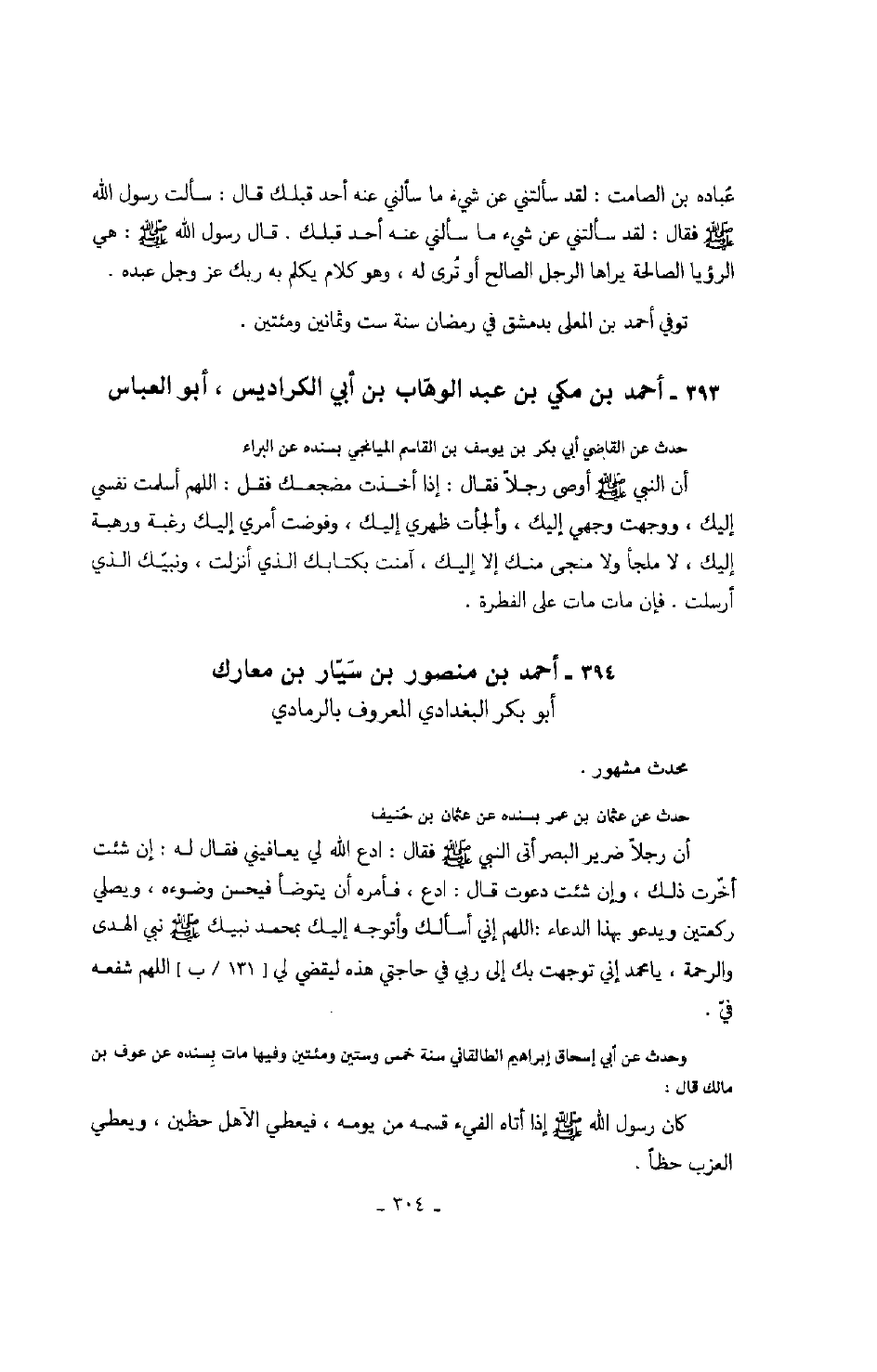 قال محمد بن مخلد: كان الرمادي إذا اشتكى شيئاً قال: هاتوا أصحاب الحديث فإذا حضروا عنده قال: اقرؤوا علي الحديث.
