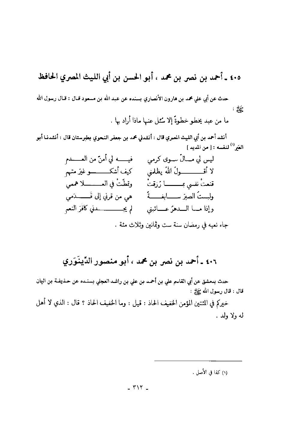 أبو بكر الخفاف حدث عن أحمد بن عمير بسنده عن ابن عمر قال: قال رسول الله صَلَّى اللهُ عَلَيْهِ وَسَلَّمَ: إذا حضر العشاء وأقيمت الصلاة فابدؤوا بالعشاء.