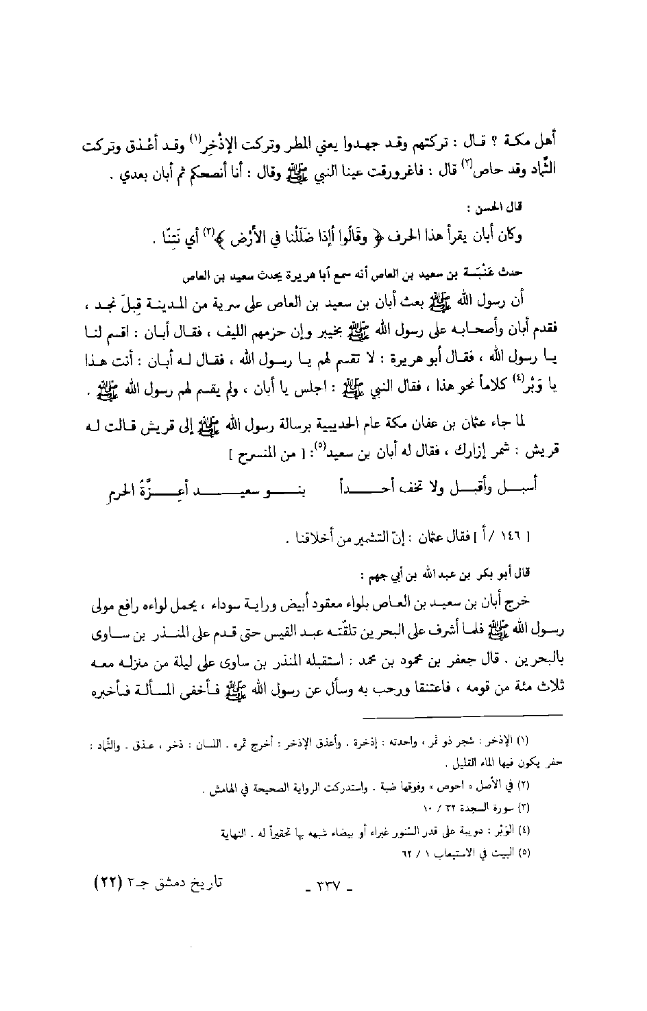 أبان بذكر رسول الله صَلَّى اللهُ عَلَيْهِ وَسَلَّمَ أياه، وأنه قد شفعه في قومه، وأقام أبان بن سعيد بالبحرين يأخذ صدقات المسلمين وجزية معاهديهم، وكتب إلى رسول الله صَلَّى اللهُ عَلَيْهِ وَسَلَّمَ يخبره بما اجتمع عنده من المال فبعث رسول الله صَلَّى اللهُ عَلَيْهِ وَسَلَّمَ أبا عبيدة بن الجراح إلى البحرين فحمل ذلك المال.