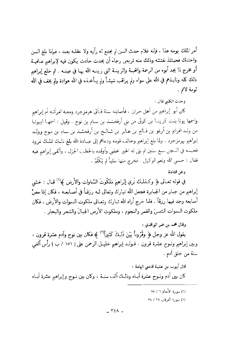 وعن ابن عباس في قوله عز وجل " وكذلك نري إبراهيم ملكوت السموات والأرض " يعني به الشمس والقمر والنجوم. لما رأى كوكباً " قال: هذا ربي " حتى غاب، فلما غاب " قال لا أحب الآفلين. فلما رأى القمر بازغاً قال هذا ربي " حتى غاب، فلما غاب " قال لئن لم يهدني ربي لأكونن من القوم الضالين فلما رأى الشمس بازغةً قال هذا ربي، هذا أكبر " حتى غابت " قال يا قوم إني بريءٌ مما تشركون. إني وجهت وجهي للذي فطر السموات والأرض " الآية.