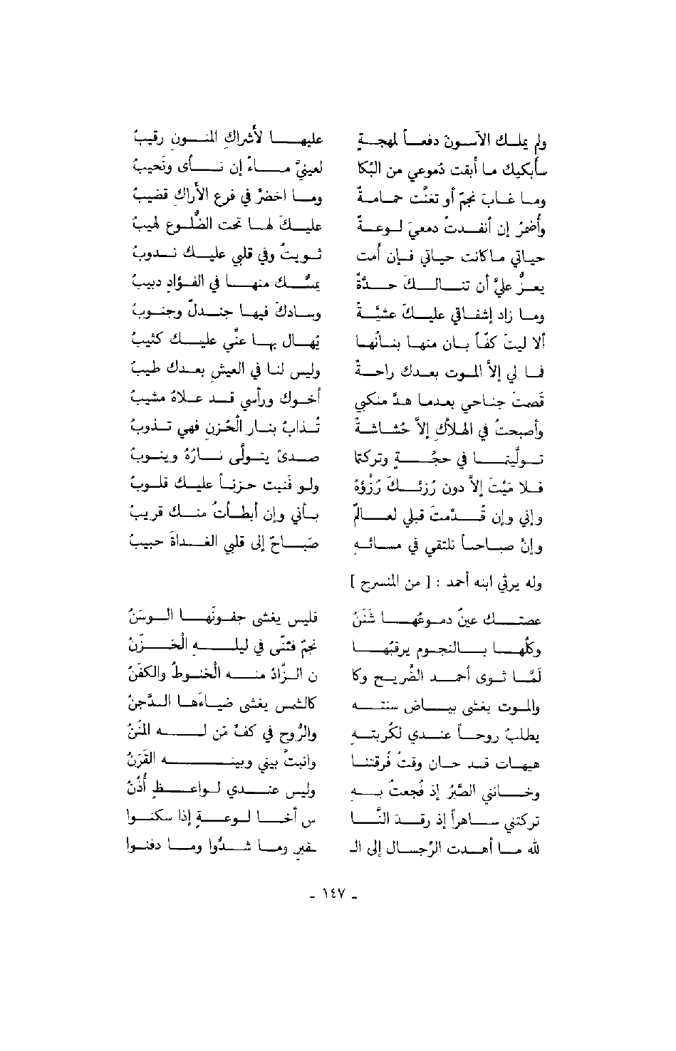 وله يرثي ابنه أحمد: من المنسرح
