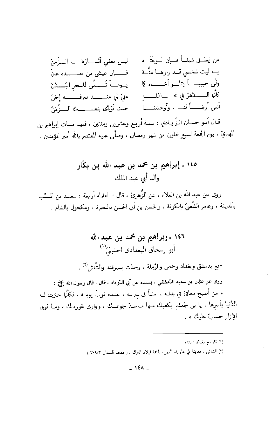 أبو إسحاق البغدادي الحنبليّ سمع بدمشق وبغداد وحمص والرّملة، وحدّ بسمرقند والشّاش.