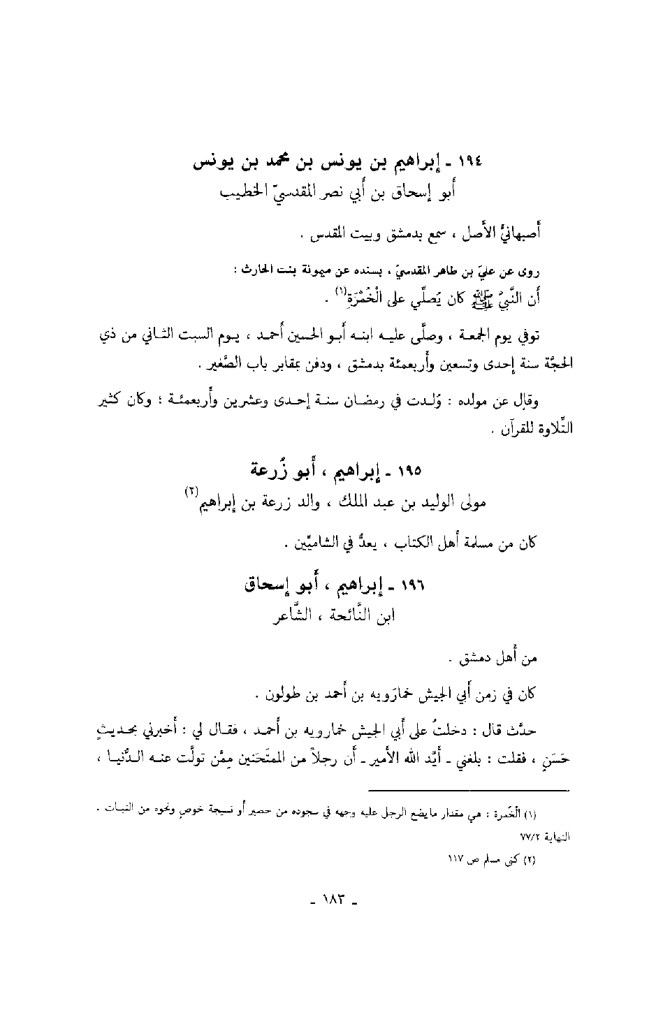 مولى الوليد بن عبد الملك، والد زرعة بن إبراهيم كان من مسلمة أهل الكتاب، يعدّ في الشاميّين.
