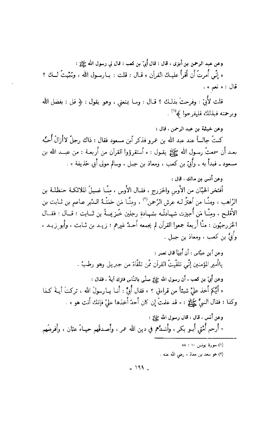 وعن عبد الرحمن بن أبزى، قال: قال أبيّ بن كعب: قال لي رسول الله صَلَّى اللهُ عَلَيْهِ وَسَلَّمَ: " إنّي أمرت أن أقرأ عليك القرآن " قال: قلت: يا رسول الله، وسمّيت لك؟ قال: نعم.