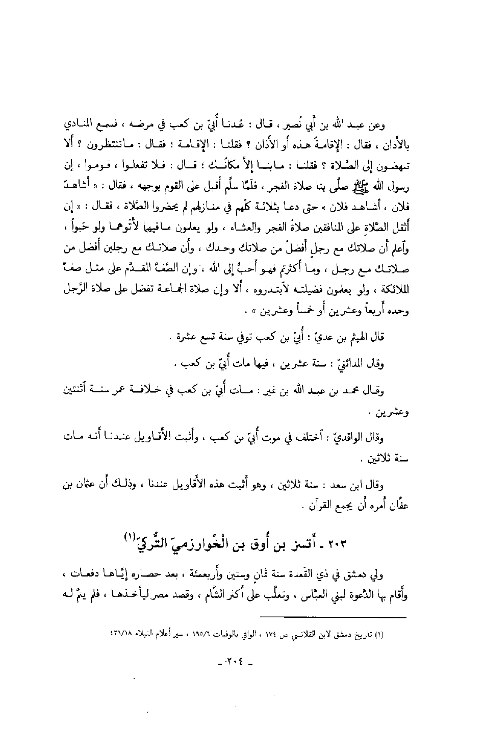 وقال الواقدي: اختلف في موت أبيّ بن كعب، وأثبت الأقاويل عندنا أنه مات سنة ثلاثين.