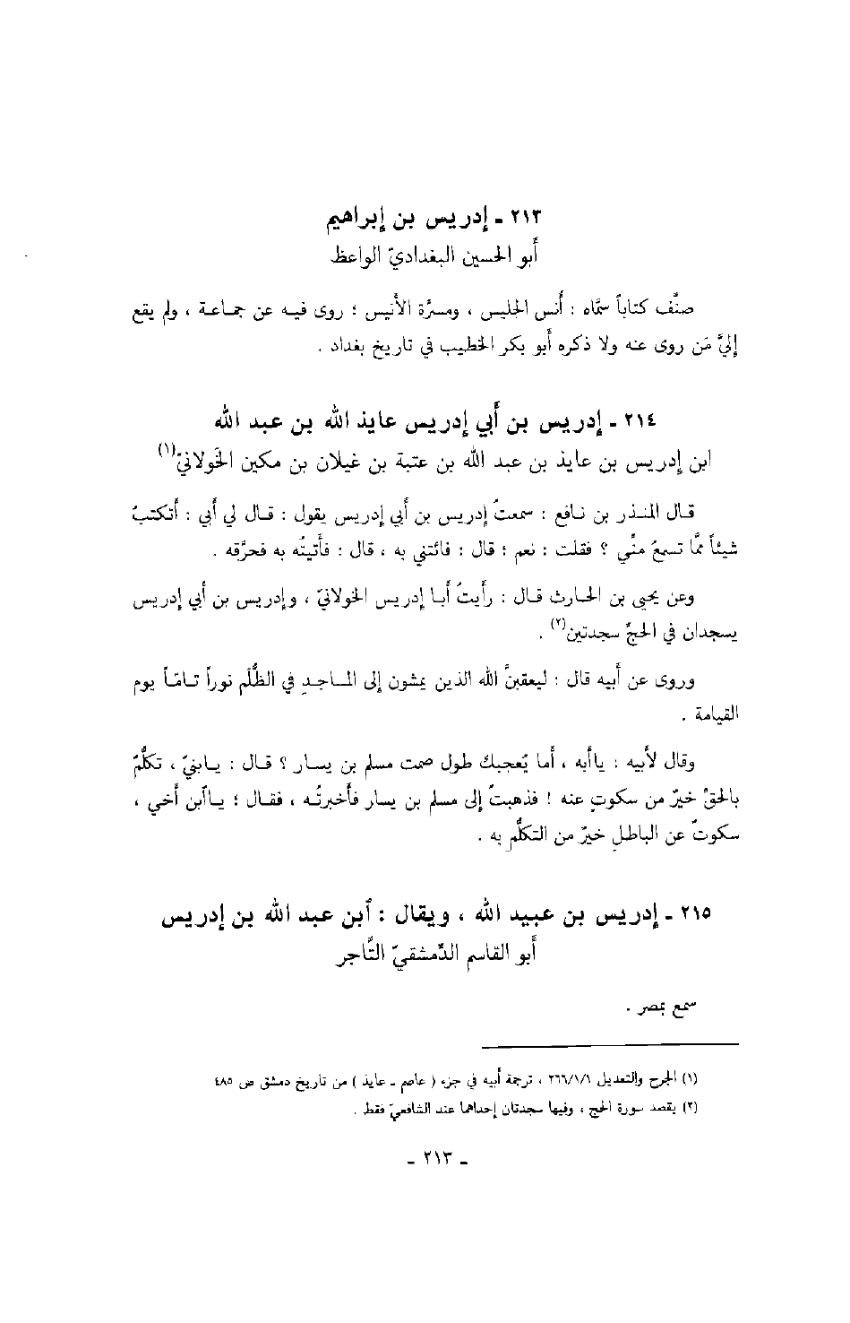 ابن عبد الله بن إدريس بن عايذ بن عبد الله بن عتبة بن غيلان بن مكين الخولانيّ قال المنذر بن نافع: سمعت إدريس بن أبي إدريس يقول: قال لي أبي: أتكتب شيئاً ممّا تسمع منّي؟ فقلت: نعم؛ قال: فائتني به، قال: فأتيته به فحرّقه.