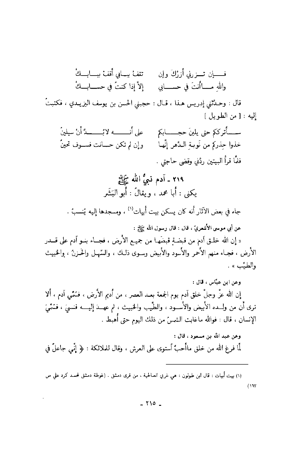 يكنى: أبا محمد، ويقال: أبو البشر جاء في بعض الآثار أنه كان يسكن بيت أبيات، ومسجدها إليه ينسب.