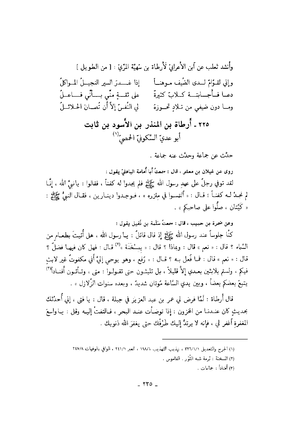 وأنشد ثعلب عن ابن الأعرابيّ لأرطاة بن سهيّة المّريّ: من الطويل