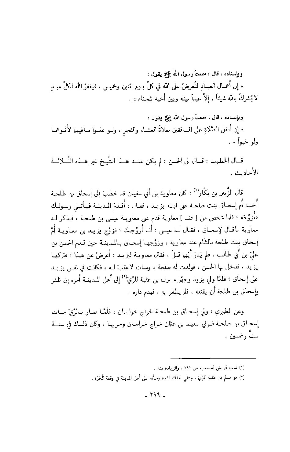 وعن الطبري: ولي إسحاق بن طلحة خراج خراسان، فلما صار بالري مات إسحاق بن طلحة فولي سعيد بن عثمان خراج خراسان وحربها، وكان ذلك في سنة ست وخمسين.