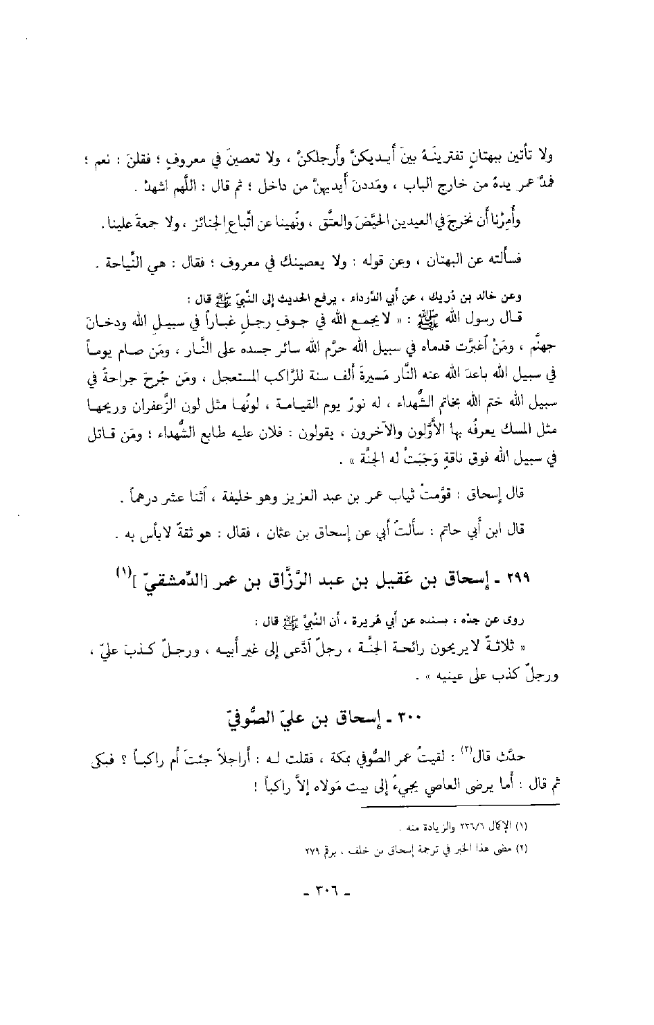 ابن عمر الدمشقي روى عن جده، بسنده عن أبي هريرة، أن النبي صَلَّى اللهُ عَلَيْهِ وَسَلَّمَ قال: " ثلاثة لا يريحون رائحة الجنة، رجل ادعى إلى غير أبيه، ورجل كذب علي، ورجل كذب على عيني ".