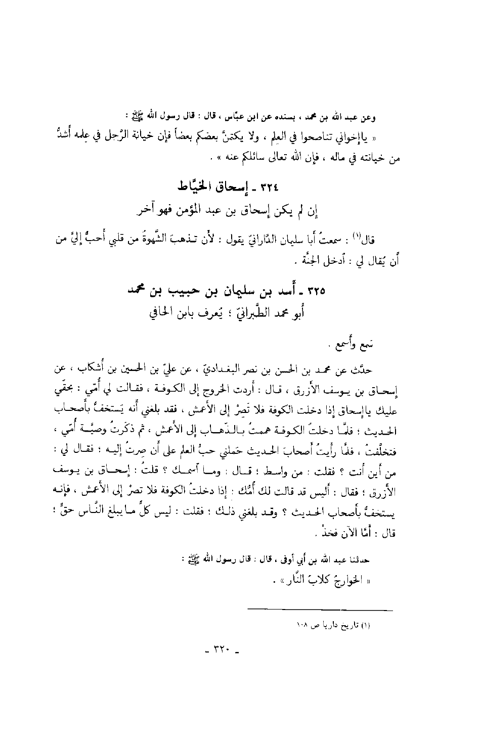 " يا إخواني تناصحوا في العلم، ولا يكتمن بعضكم بعضاً فإن خيانة الرجل في علمه أشد من خيانته في ماله، فإن الله تعالى سائلكم عنه ".