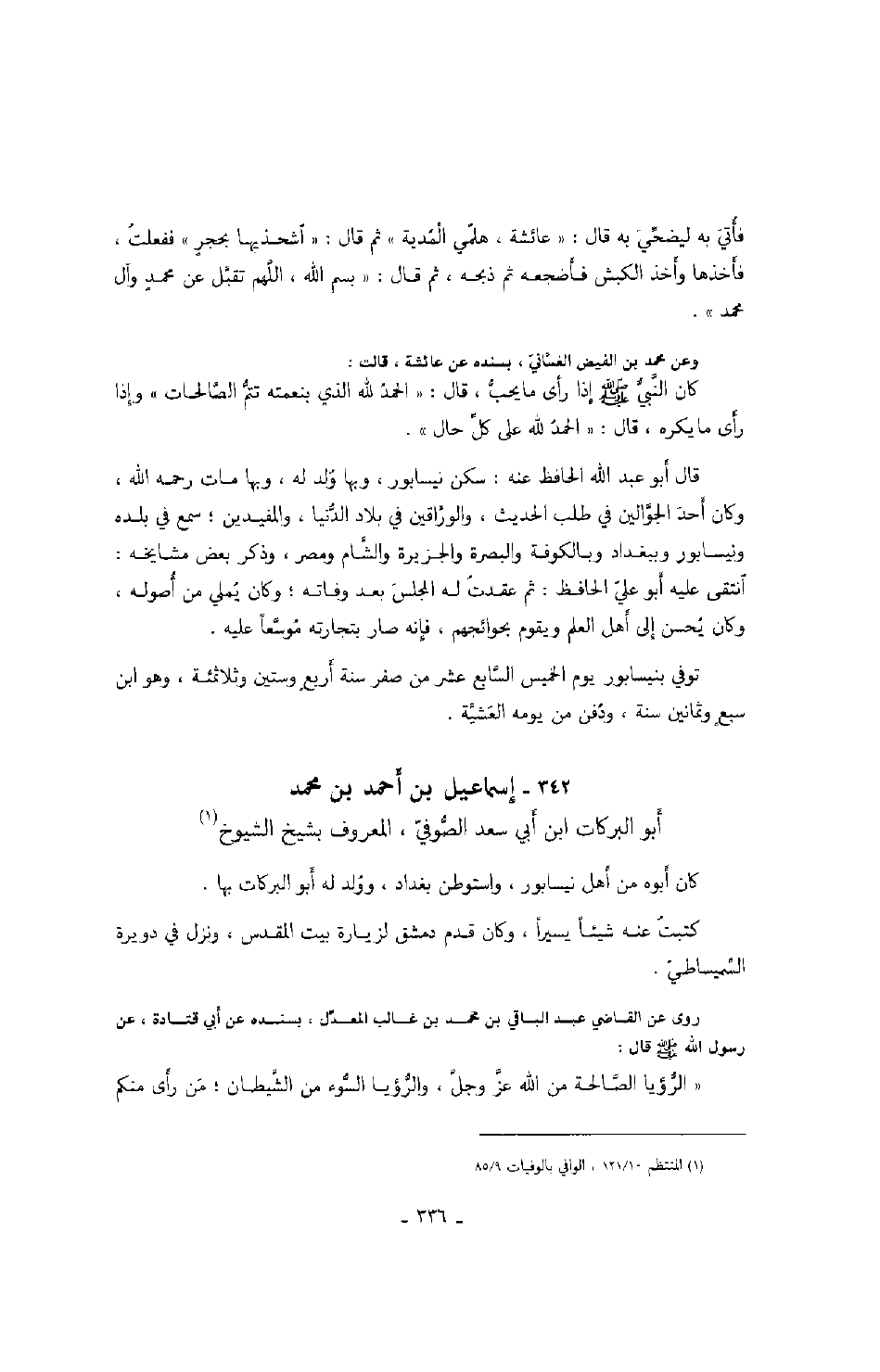 روى عن القاضي عبد الباقي بن محمد بن غالب المعدل، بسنده عن أبي قتادة، عن رسول الله صَلَّى اللهُ عَلَيْهِ وَسَلَّمَ قال: الرؤيا الصالحة من الله عز وجل، والرؤيا السوء من الشيطان؛ من رأى منكم