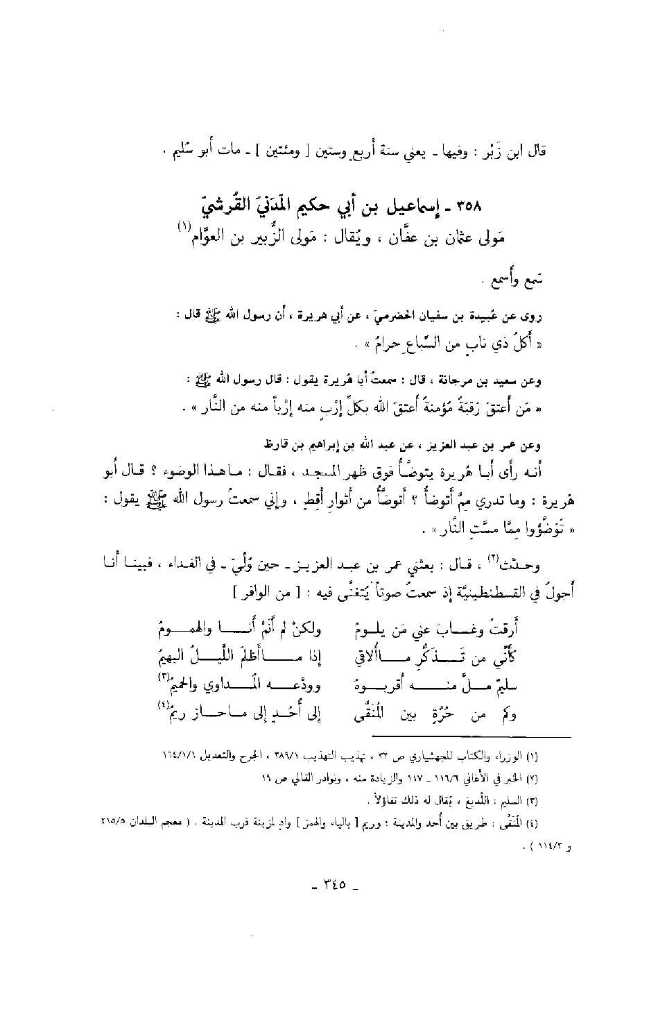 روى عن عبيدة بن سفيان الحضرمي، عن أبي هريرة، أن رسول الله صَلَّى اللهُ عَلَيْهِ وَسَلَّمَ قال: " أكل ذي ناب من السباع حرام ".