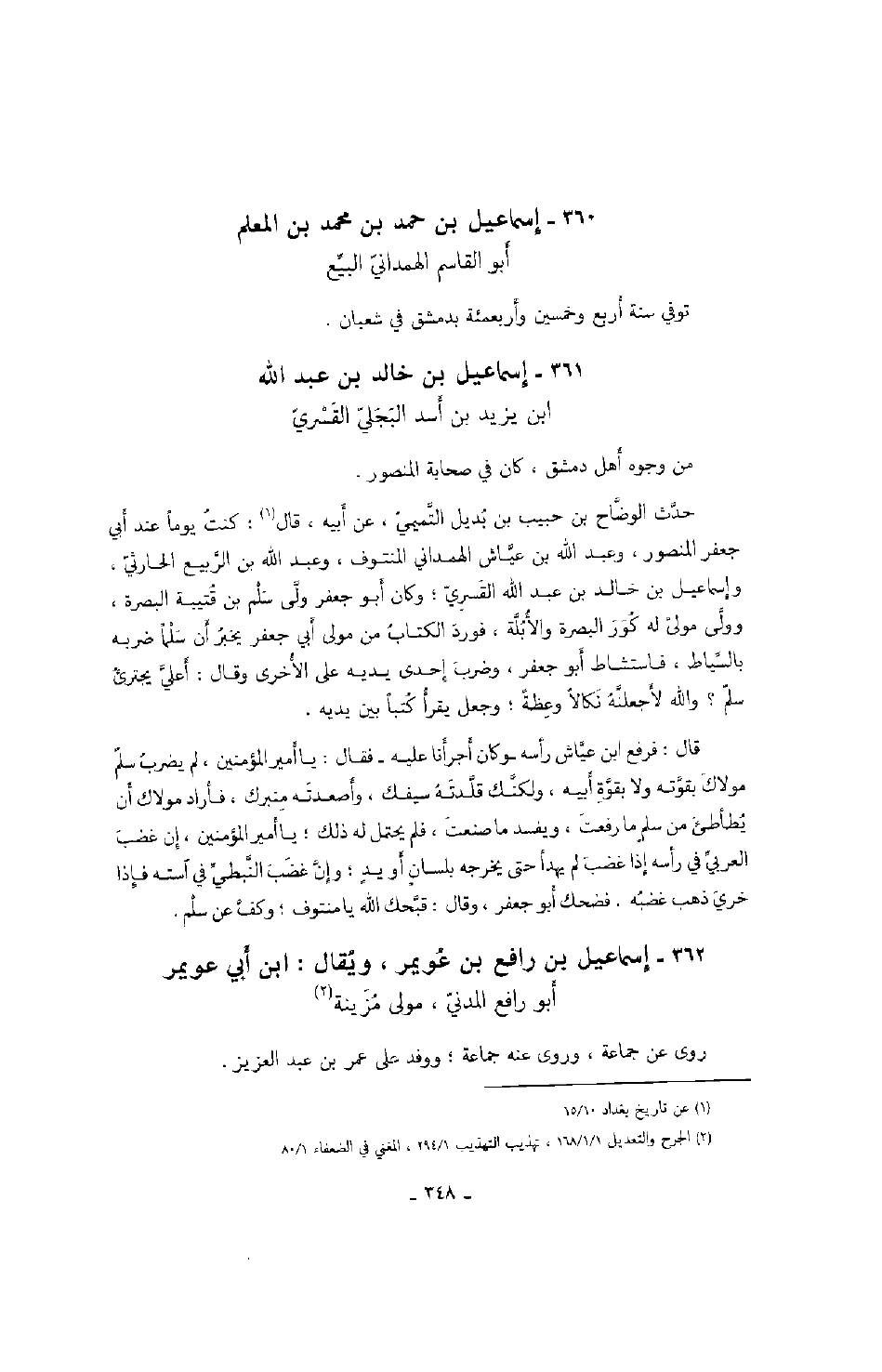 قال: فرفع ابن عياش رأسه وكان أجرأنا عليه فقال: يا أمير المؤمنين، لم يضرب سلم مولاك بقوته ولا بقوة أبيه، ولكنك قلدته سيفك، وأصعدته منبرك، فأراد مولاك أن يطأطئ من سلم ما رفعت، ويفسد ما صنعت، فلم يحتمل له ذلك؛ يا أمير المؤمنين، إن غضب العربي في رأسه إذا غضب لم يهدأ حتى يخرجه بلسان أو يد؛ وإن غضب النبطي في استه فإذا خري ذهب غضبه. فضحك أبو جعفر، وقال: قبحك الله يا منتوف؛ وكف عن سلم.