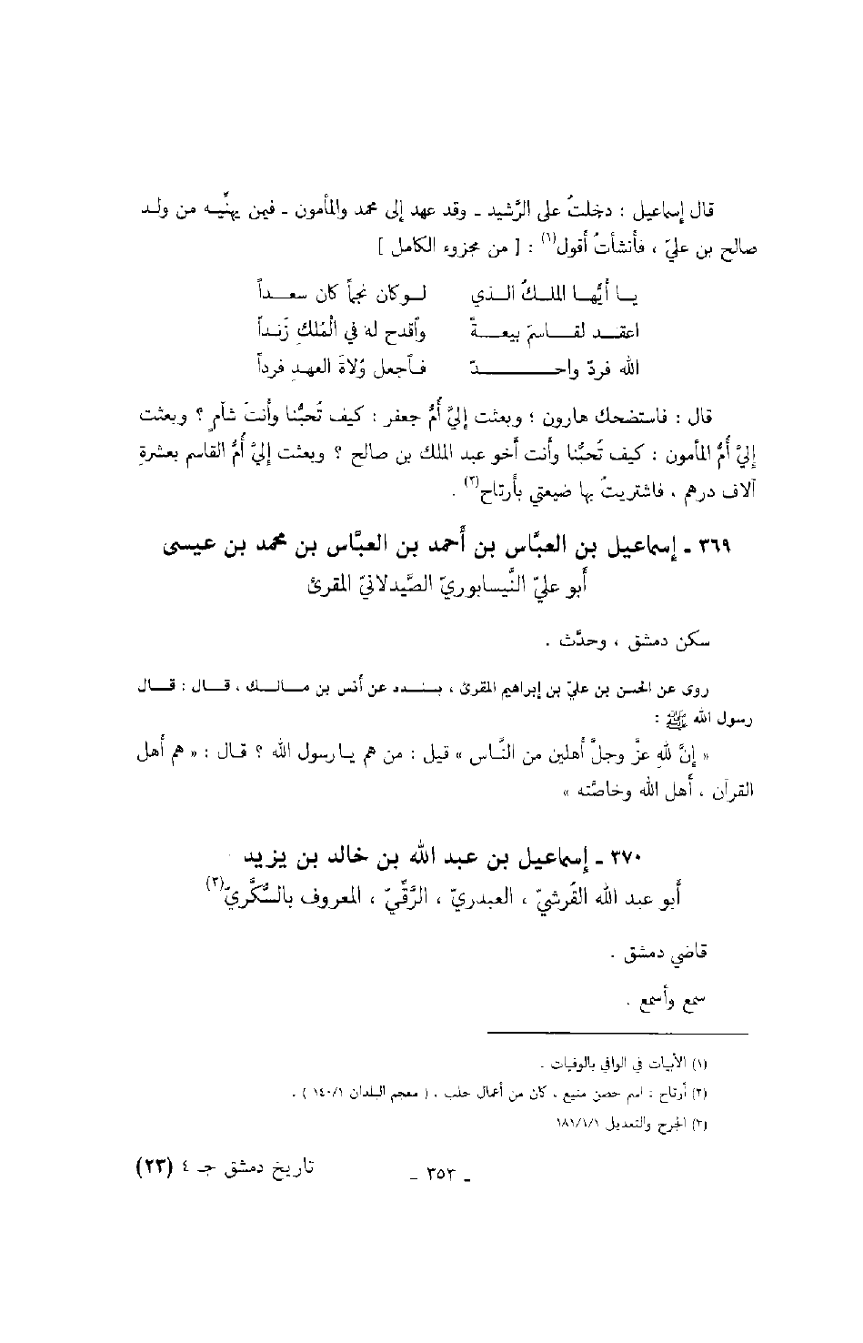 قال إسماعيل: دخلت على الرشيد وقد عهد إلى محمد والمأمون فيمن يهنيه من ولد صالح بن علي، فأنشأت أقول: من مجزوء الكامل