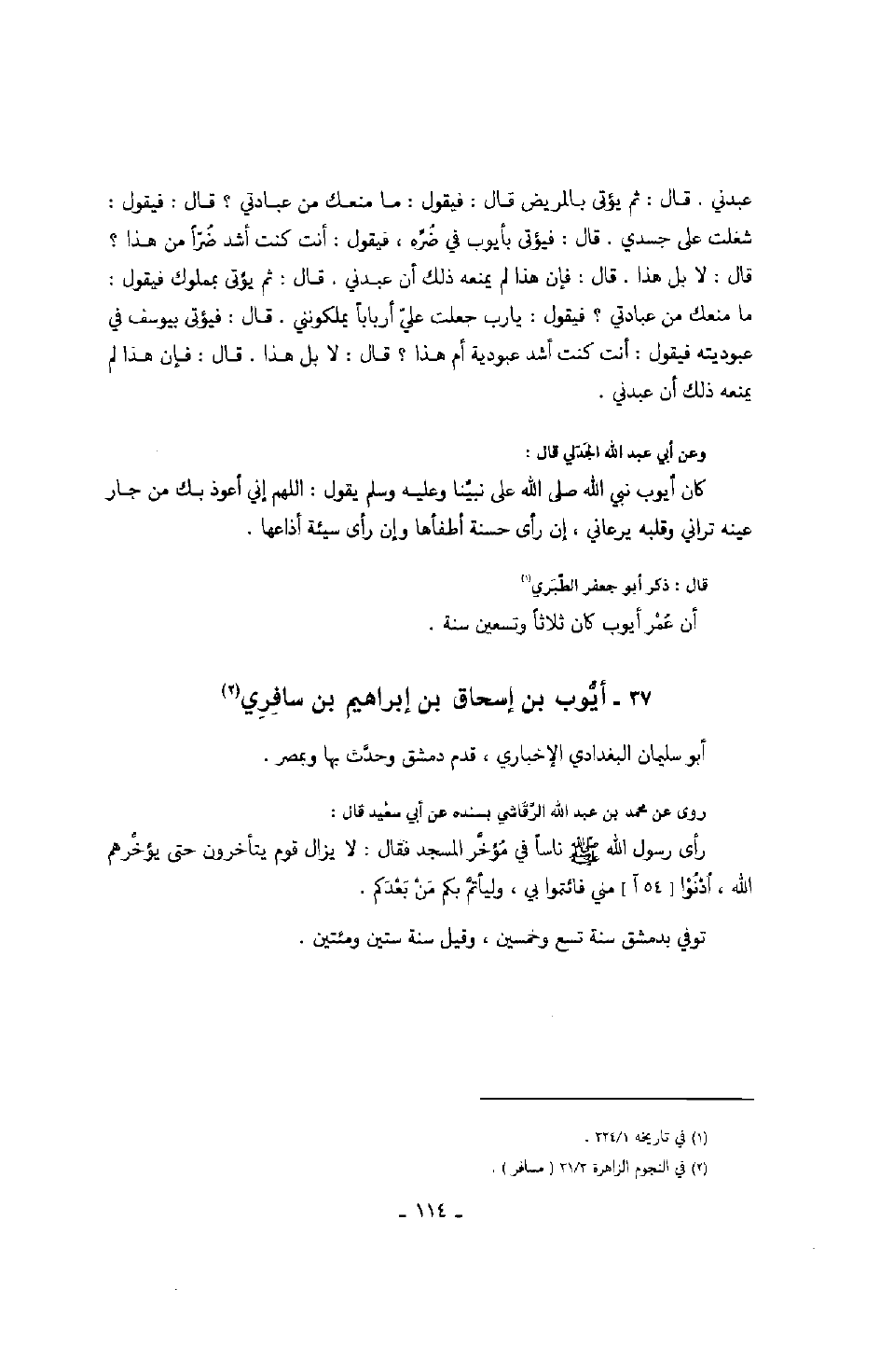 قال: ذكر أبو جعفر الطبري أن عمر أيوب كان ثلاثاً وتسعين سنة.