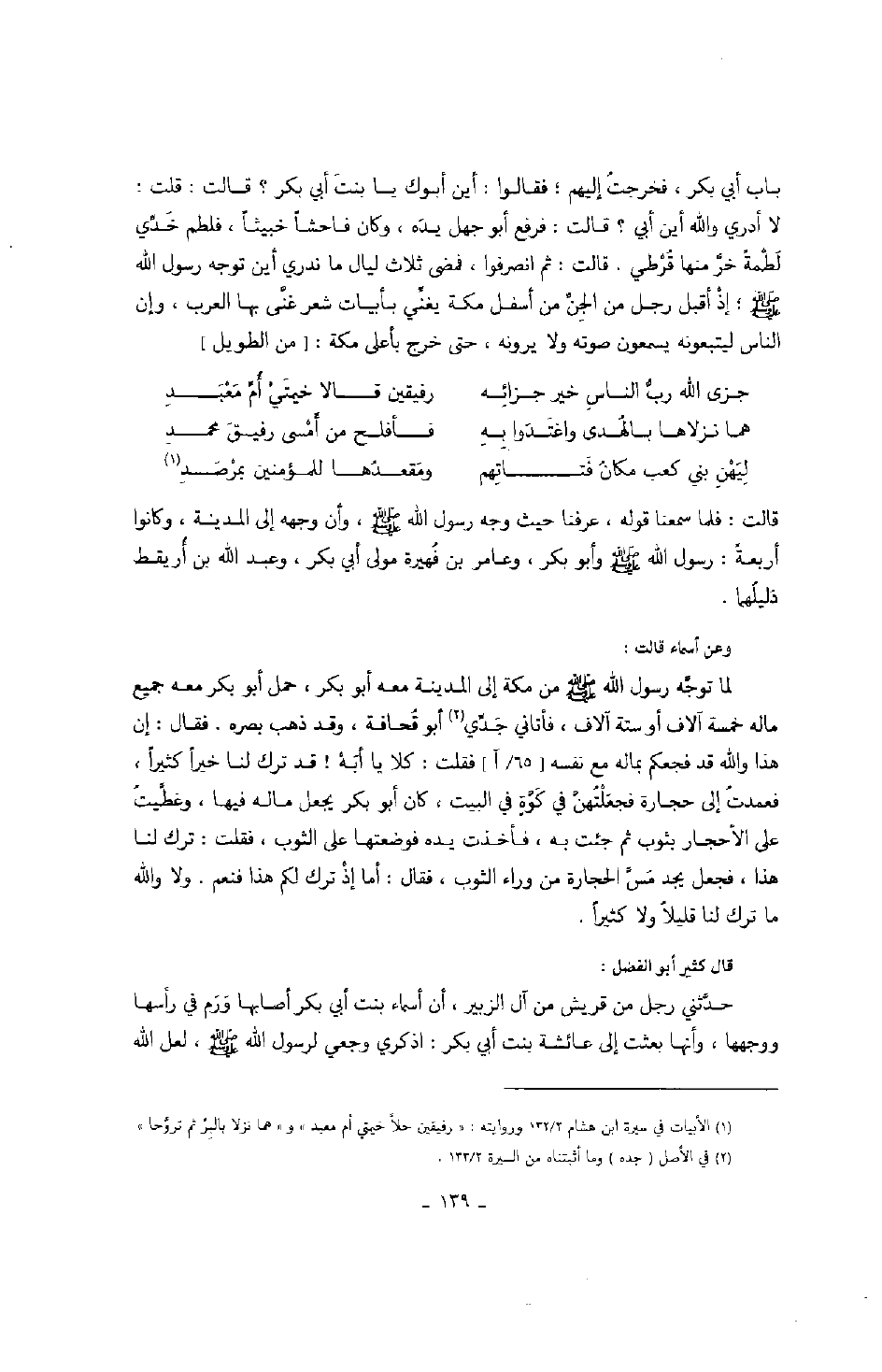 قالت: فلما سمعنا قوله، عرفنا حيث وجه رسول الله صَلَّى اللهُ عَلَيْهِ وَسَلَّمَ، وأن وجهه إلى المدينة، وكانوا أربعة: رسول الله صَلَّى اللهُ عَلَيْهِ وَسَلَّمَ وأبو بكر، وعامر بن فهيرة مولى أبي بكر، وعبد الله بن أريقط دليلهما.