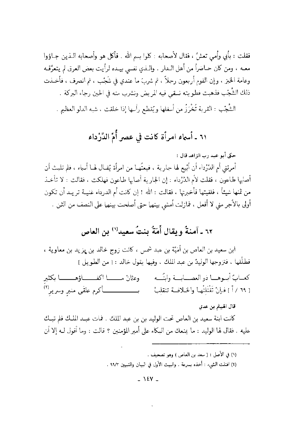 قال الهيثم بن عدي: كانت ابنة سعيد بن العاص تحت الوليد بن عبد الملك.