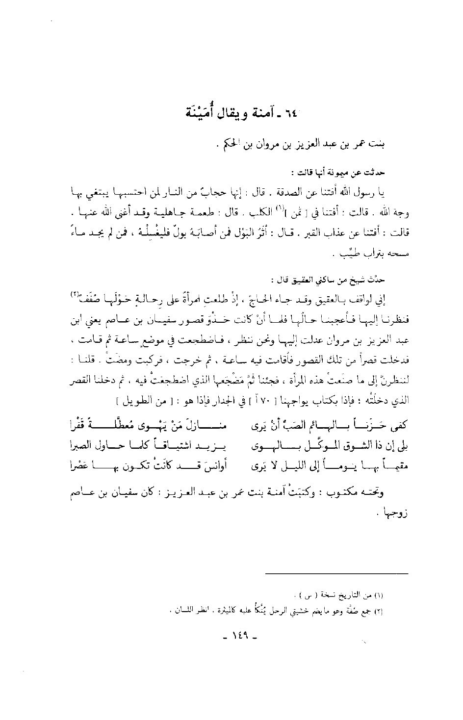 وتحته مكتوب: وكتبت آمنة بنت عمر بن عبد العزيز: كان سفيان بن عاصم زوجها.