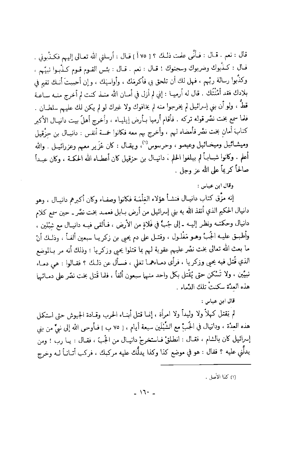 قال ابن عباس: لم يقتل كهلاً ولا وليداً ولا امرأة، إنما قتل أبناء الحرب وقادة الجيوش حتى استكمل هذه العدة، ودانيال في الجب مع الشبلين سبعة أيام فأوحى الله إلى نبي من بني إسرائيل كان بالشام، فقال: " انطلق فاستخرج دانيال من الجب "، فقال: يا رب! ومن يدلني عليه؟ فقال: " هو في موضع كذا وكذا يدلك عليه مركبك "، فركب أتاناً له وخرج
