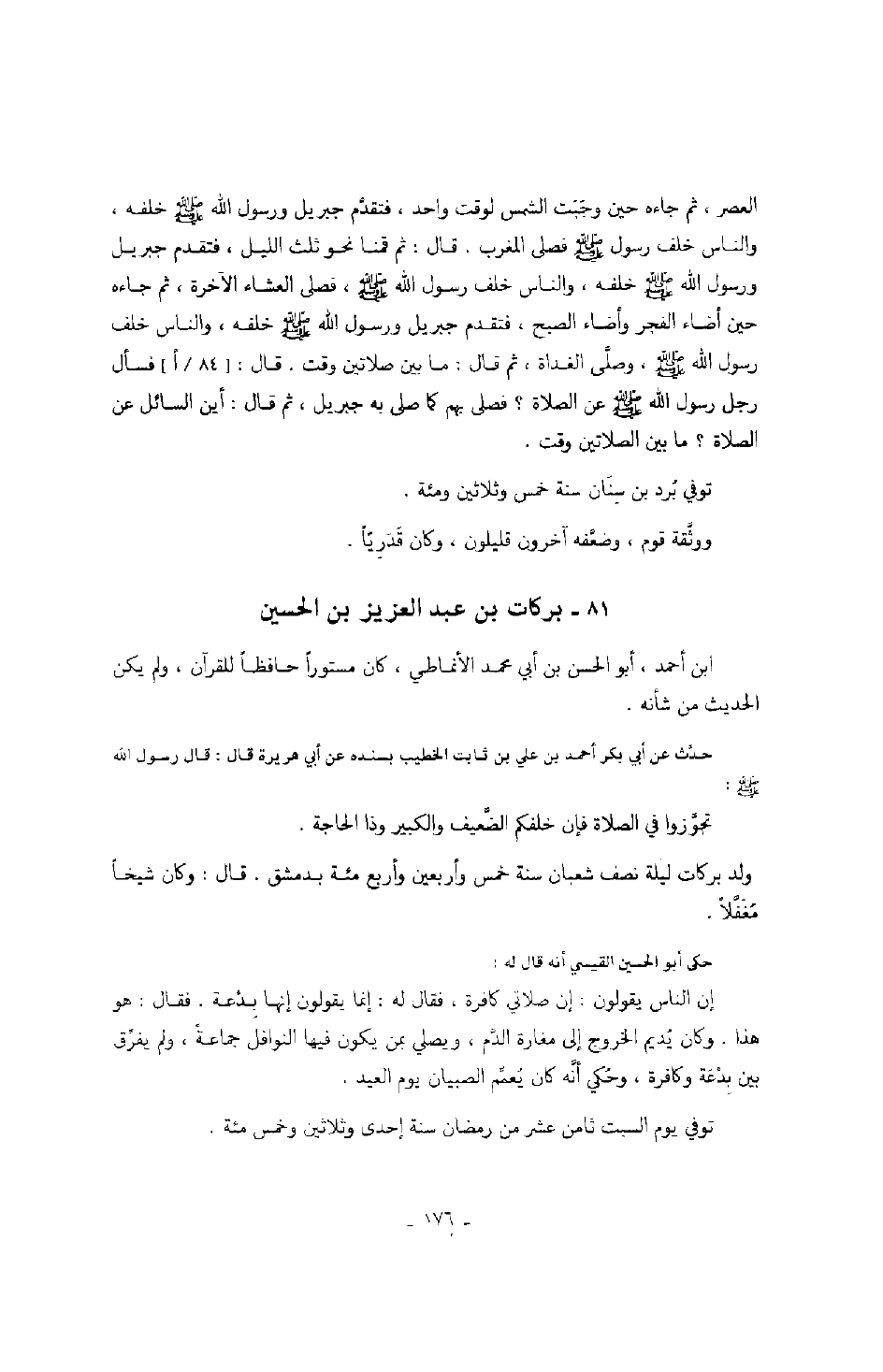 ولد بركات ليلة نصف شعبان سنة خمس وأربعين وأربع مائة بدمشق.