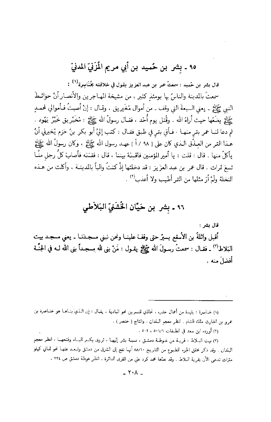 المزني المدني قال بشر بن حميد: سمعت عمر بن عبد العزيز يقول بخلافته بخناصرة: سمعت بالمدينة والناس يومئذٍ كثير، من مشيخة المهاجرين والأنصار أن حوائط النبي صَلَّى اللهُ عَلَيْهِ وَسَلَّمَ - يعني السبعة التي وقف - من أموال مخيريق، وقال: إن أصبت فأموالي لمحمدٍ صَلَّى اللهُ عَلَيْهِ وَسَلَّمَ يضعها حيث أراه الله.