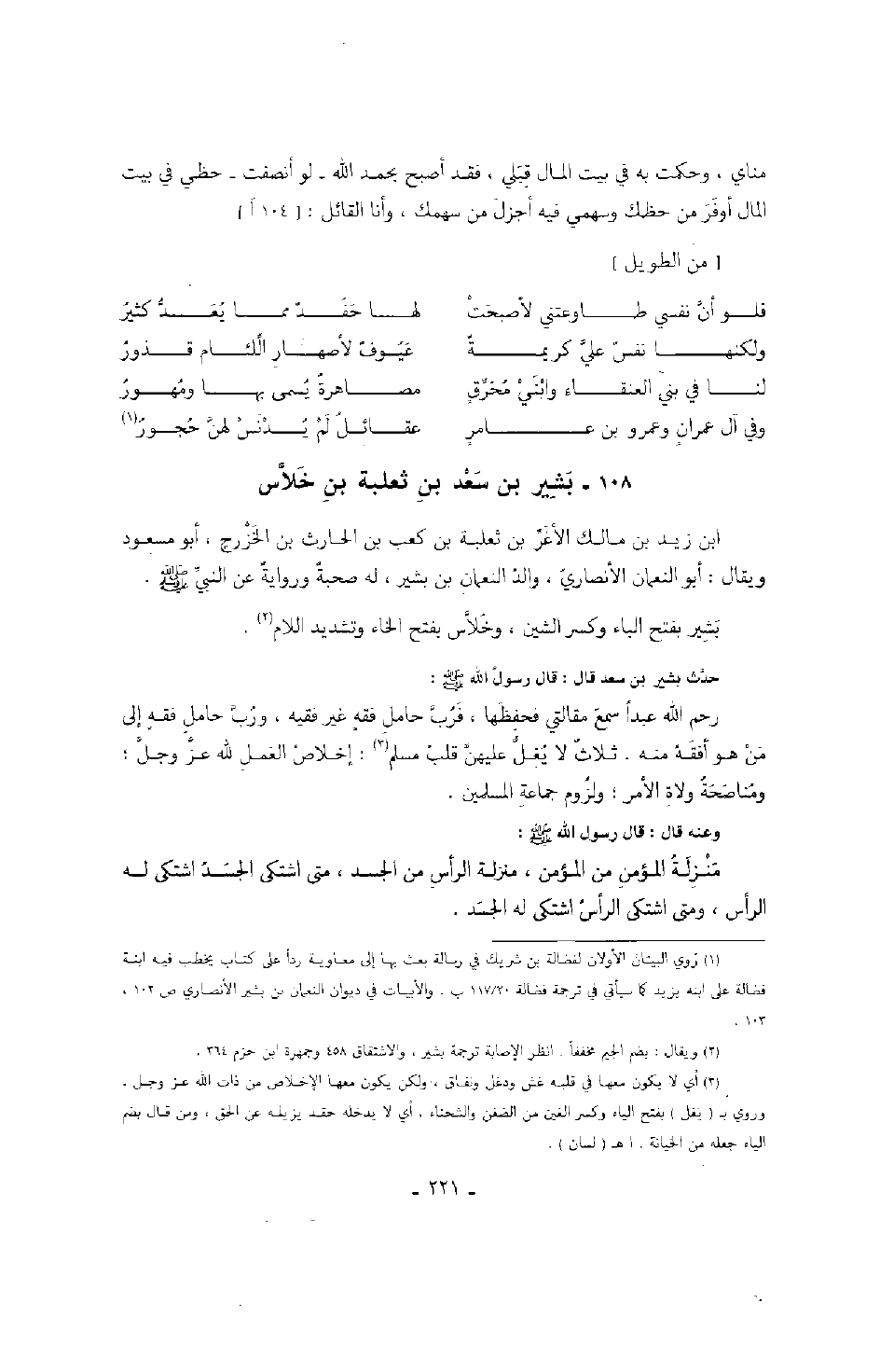 حدث بشير بن سعد قال: قال رسول الله صَلَّى اللهُ عَلَيْهِ وَسَلَّمَ: