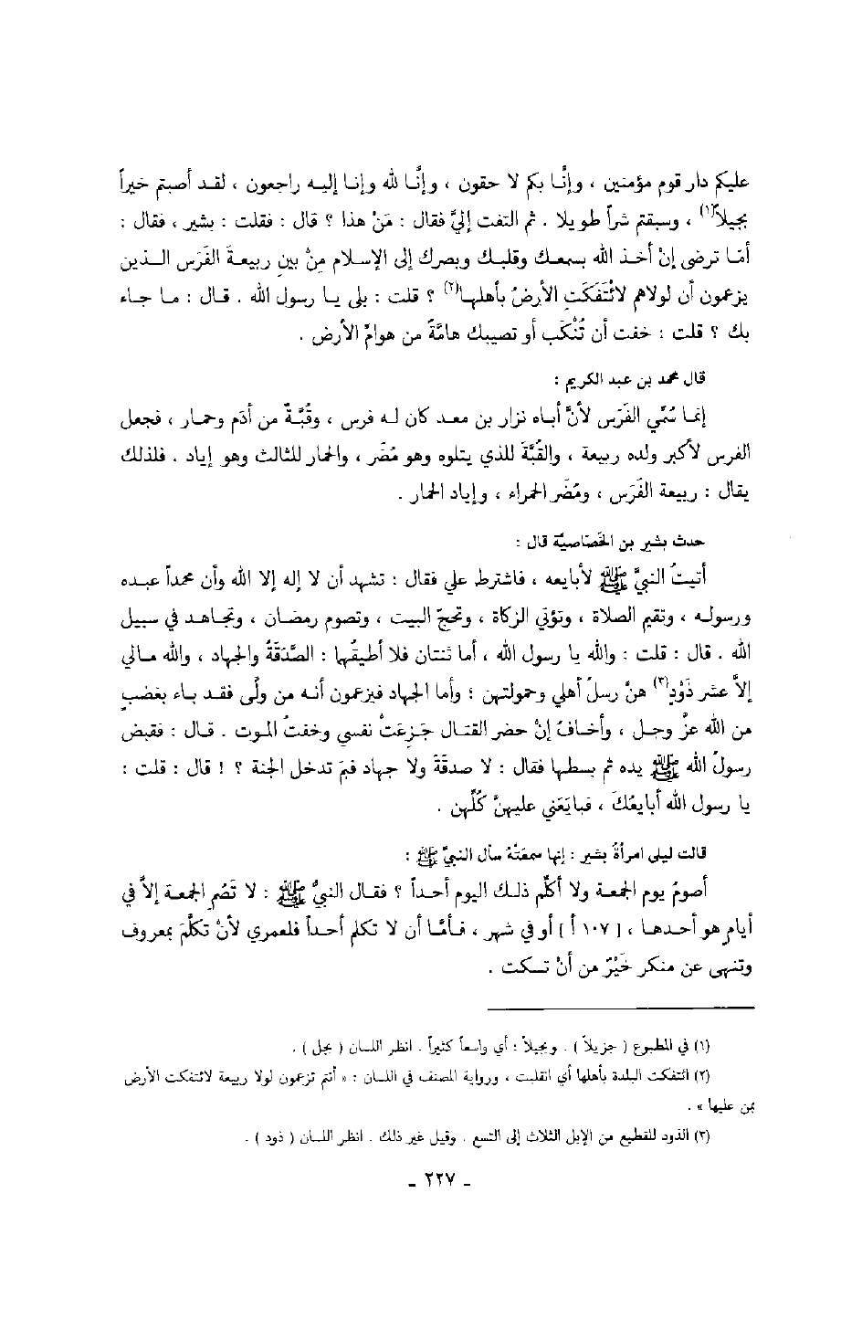 ثم التفت إلي فقال: " من هذا؟ " قال: فقلت: بشير، فقال: " أما ترضى إن أخذ الله بسمعك وقلبك وبصرك إلى الإسلام من بين ربيعة الفرس الذين يزعمون أن لولاهم لائتفكت الأرض بأهلها؟ " قلت: بلى يا رسول الله.