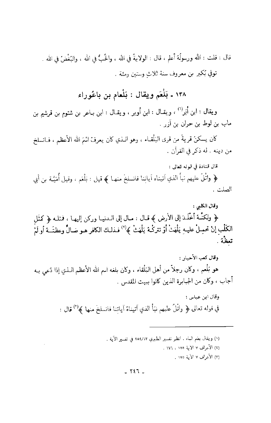 قال قتادة في قوله تعالى: " واتل عليهم نبأ الذي آتيناه آياتنا فانسلخ منها " قيل: بلعم، وقيل أمية بن أبي الصلت.