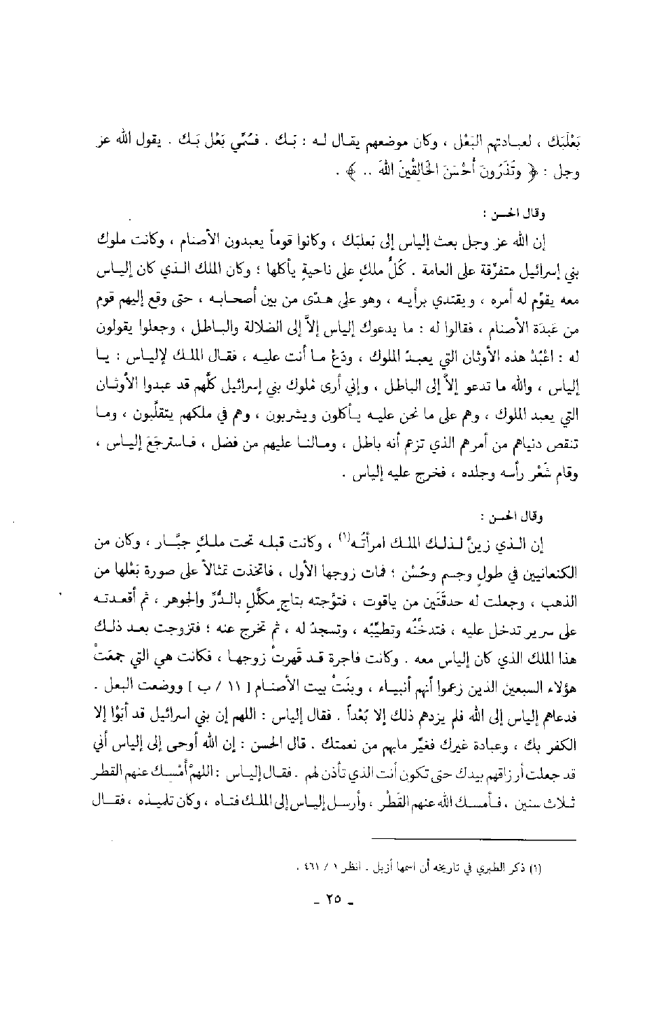 وقال الحسن: إن الله عز وجل بعث إلياس إلى بعلبك، وكانوا قوماً يعبدون الأصنام، وكانت ملوك بني إسرائيل متفرقة على العامة.