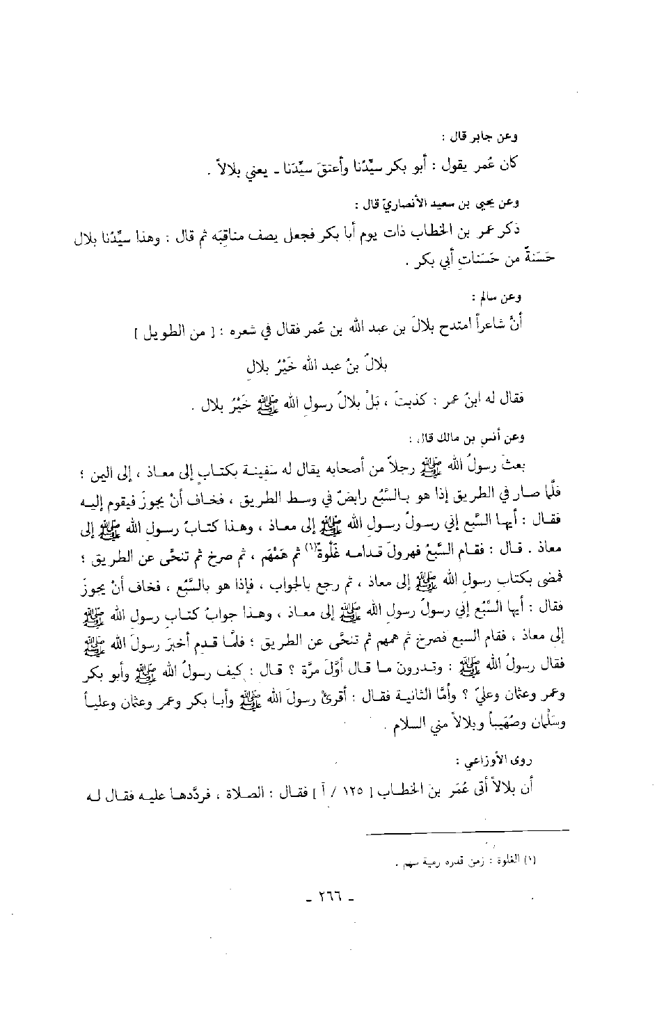 وعن جابر قال: كان عمر يقول: أبو بكر سيدنا وأعتق سيدنا، يعني بلالاً.