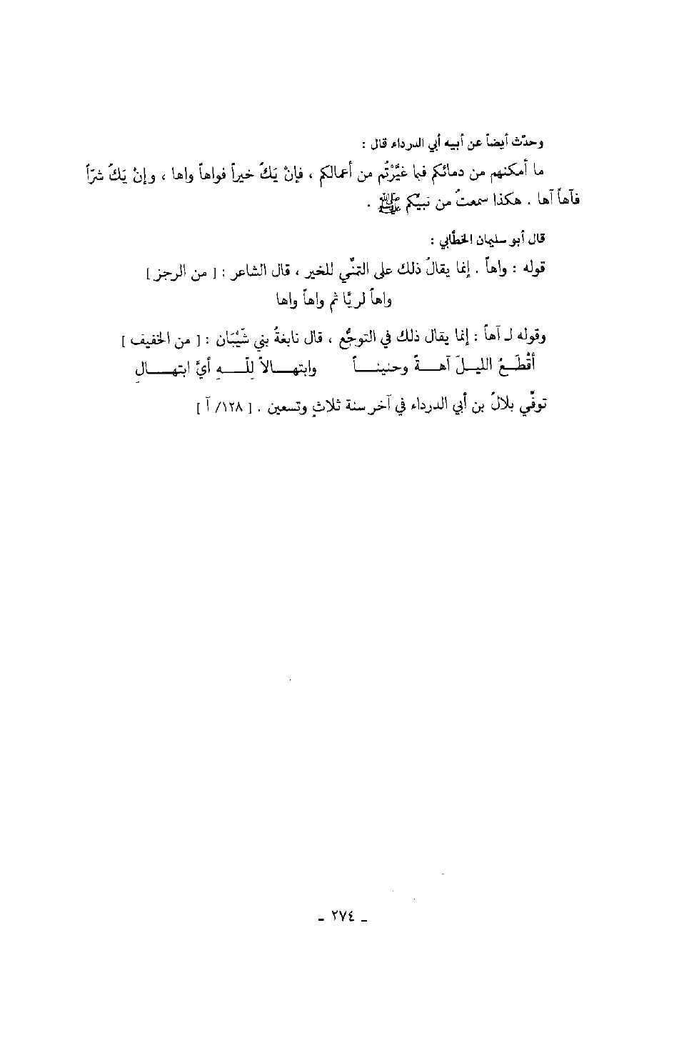 قال أبو سليمان الخطابي: قوله: واهاً.