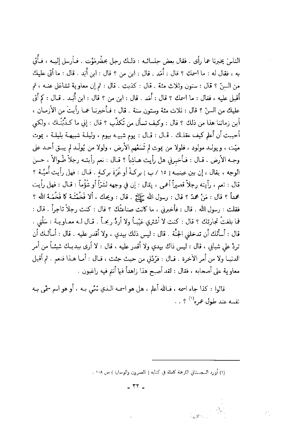 قال: ما أتى عليك من السن؟ قال: ستون وثلاث مائة.