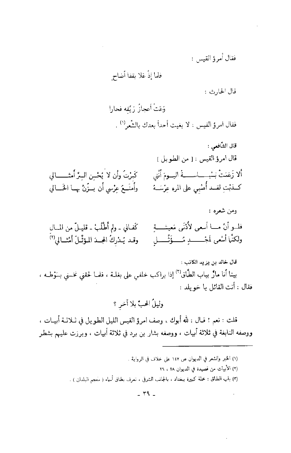 قال الشافعي: قال امرؤ القيس: " من الطويل "
