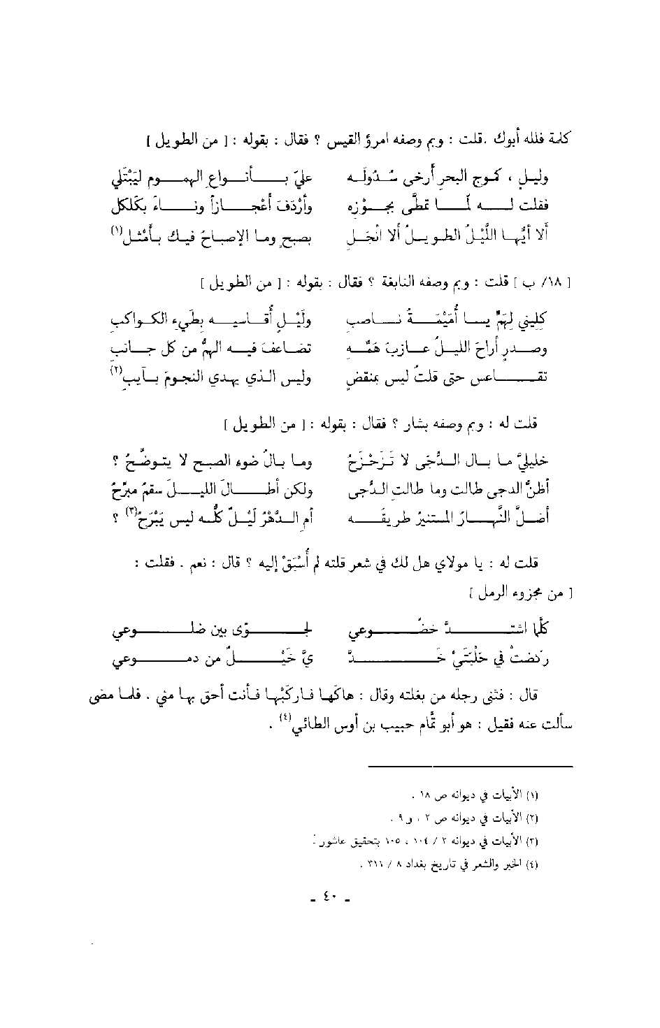 قلت له: وبم وصفه بشار؟ فقال: بقوله: " من الطويل "