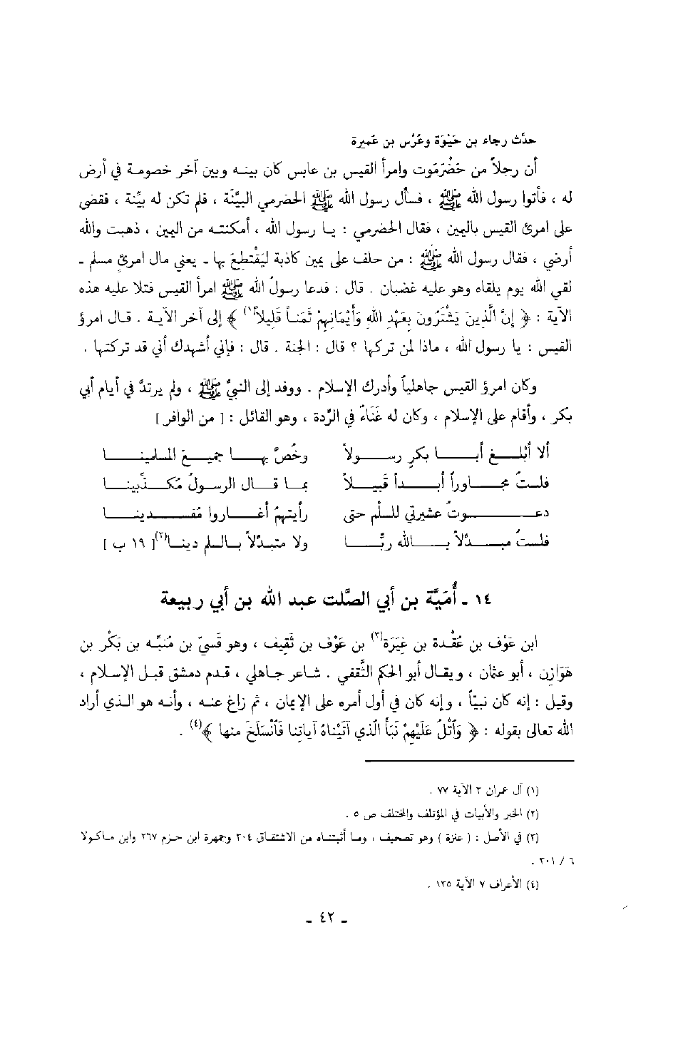 قال: فدعا رسول الله صَلَّى اللهُ عَلَيْهِ وَسَلَّمَ امرأ القيس فتلا عليه هذه الآية: " إن الذين يشترون بعهد الله وأيمانهم ثمناً قليلاً " إلى آخر الآية.