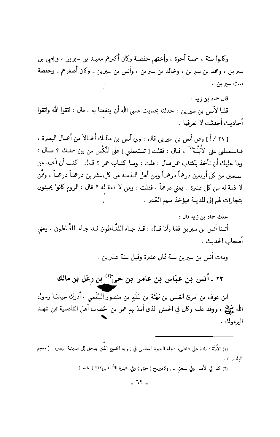 وعن أنس بن سيرين قال: ولي أنس بن مالك أعمالاً من أعمال البصيرة، فاستعملني على الأبلة، قال: فقلت: تستعملني على المكس من بين عملك؟ قال: وما عليك أن تأخذ بكتاب عمر قال: قلت: وما كتاب عمر؟ قال: كتب أن آخذ من المسلمين من كل أربعين درهماً درهماً ومن أهل الذمة من كل عشرين درهماً درهماً، وممن لا ذمة له من كل عشرة.