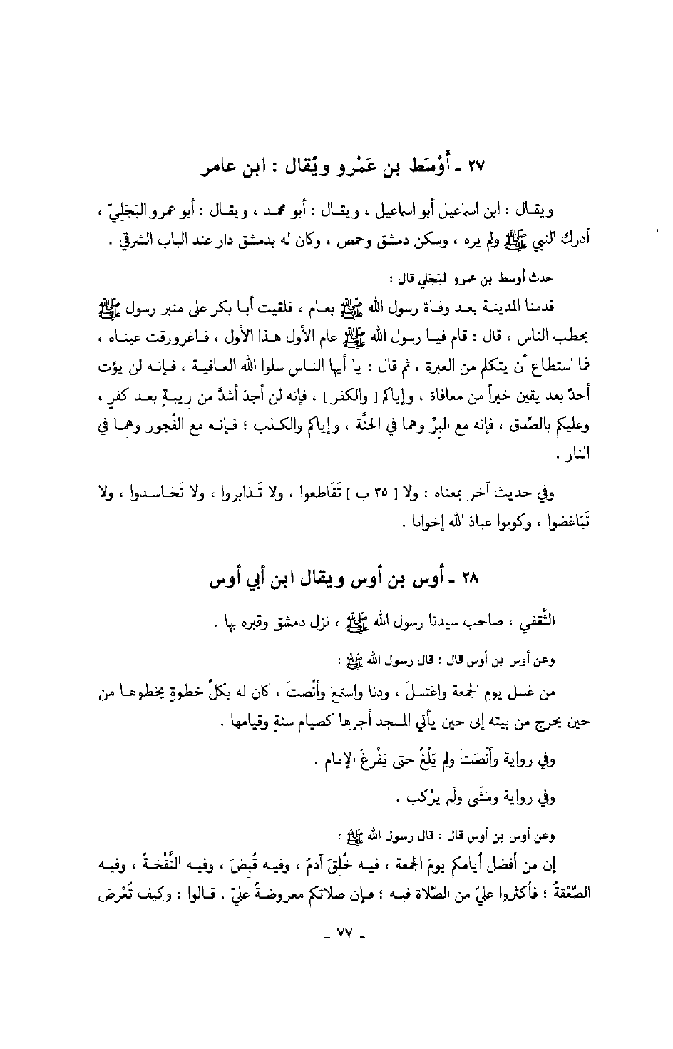 ويقال: ابن إسماعيل أبو إسماعيل، ويقال: أبو محمد، ويقال: أبو عمرو البجلي، أدرك النبي صَلَّى اللهُ عَلَيْهِ وَسَلَّمَ ولم يره، وسكن دمشق وحمص، وكان له بدمشق دار عند الباب الشرقي.