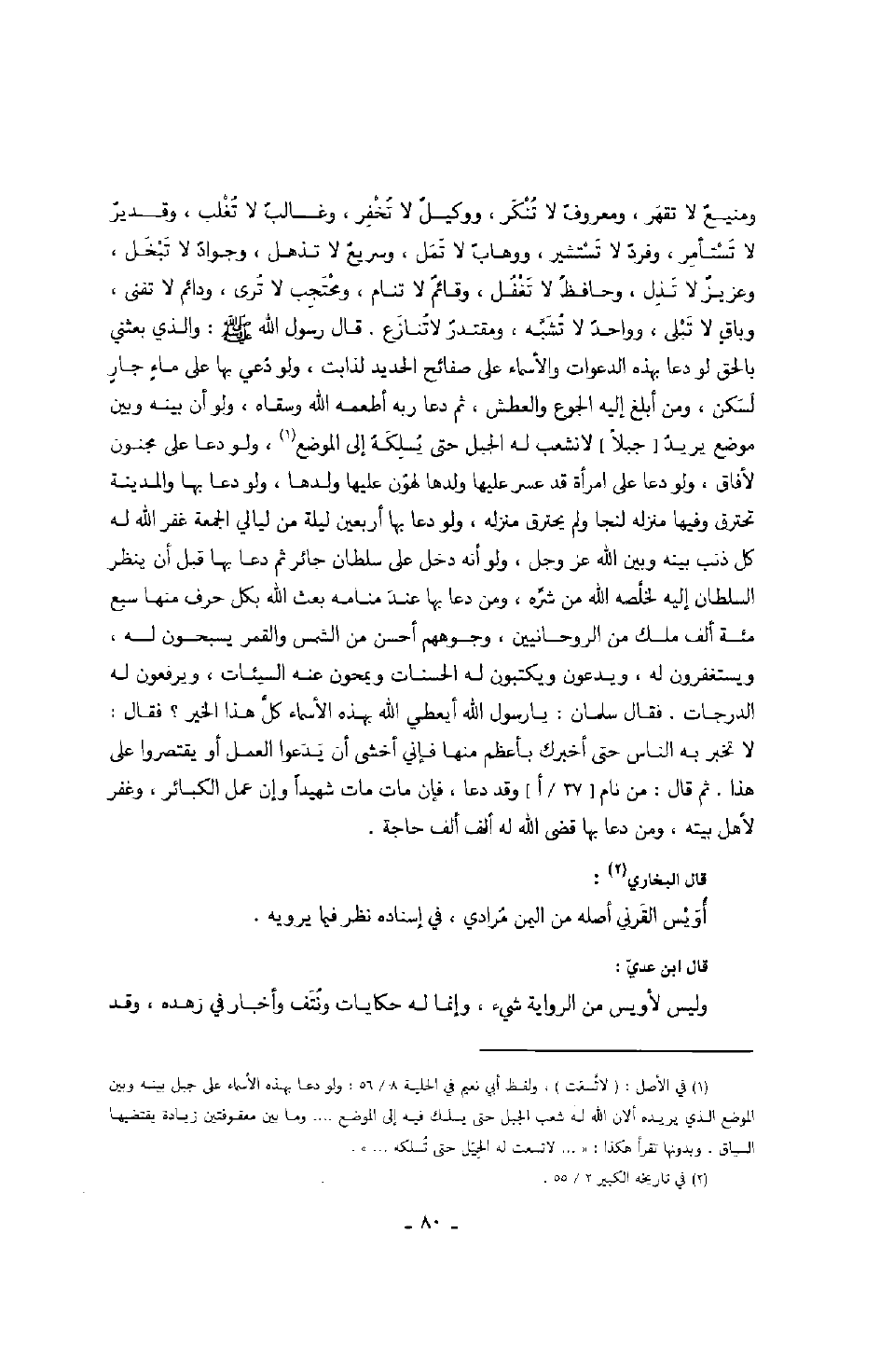 ومنيعٌ لا تقهر، ومعروفٌ لا تقهر، ووكلٌ لا تخفر، وغالبٌ لا تُغلب، وقديرٌ لا تستأمر، وفردٌ لا تستشير، ووهابٌ لا تمل، وسريعٌ لا تذهل، وجوادٌ لا تبخل، وعزيزٌ لا تذل، وحافظٌ لا تغفل، وقائمٌ لا تنام، ومحتجب لا ترى، ودائم لا تفنى، وباقٍ لا تبلى، وواحدٌ لا تشبه، ومقتدرٌ لا تنازع ".