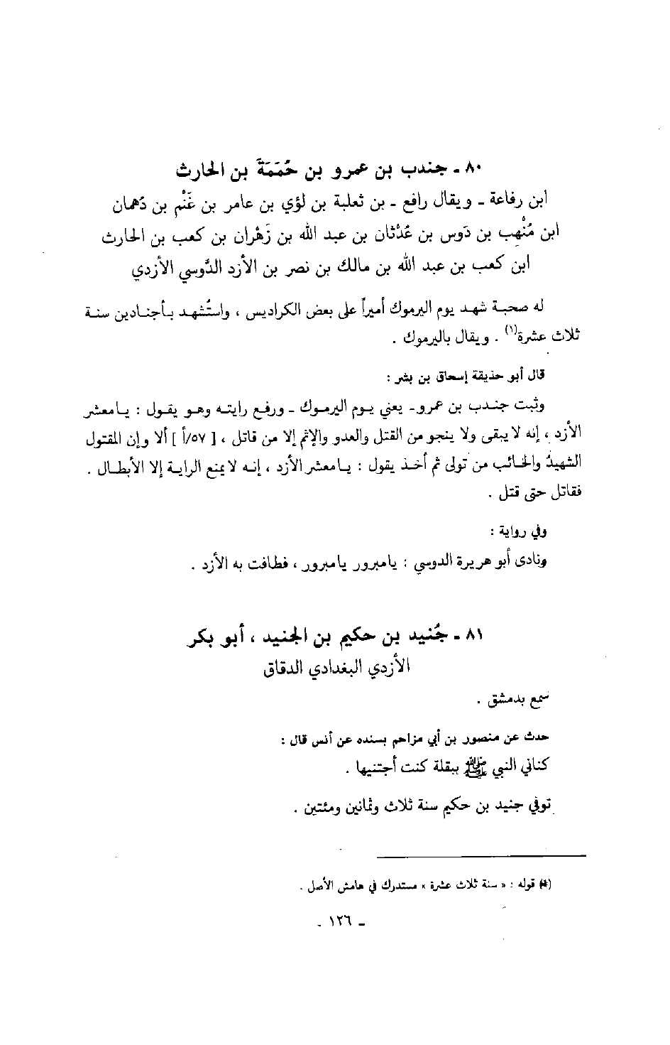 ابن رفاعة بن ثعلبة بن لؤي بن عامر بن غنم بن دهمان بن منهب بن دوس بن عدثان بن عبد الله بن زهران بن كعب بن الحارث بن كعب بن عبد الله بن مالك بن نصر بن الأزد الدوسي الأزدي: له صحبة شهد يوم اليرموك أميراً على بعض الكراديس، واستشهد بأجنادين سنة ثلاث عشرة. ويقال باليرموك.