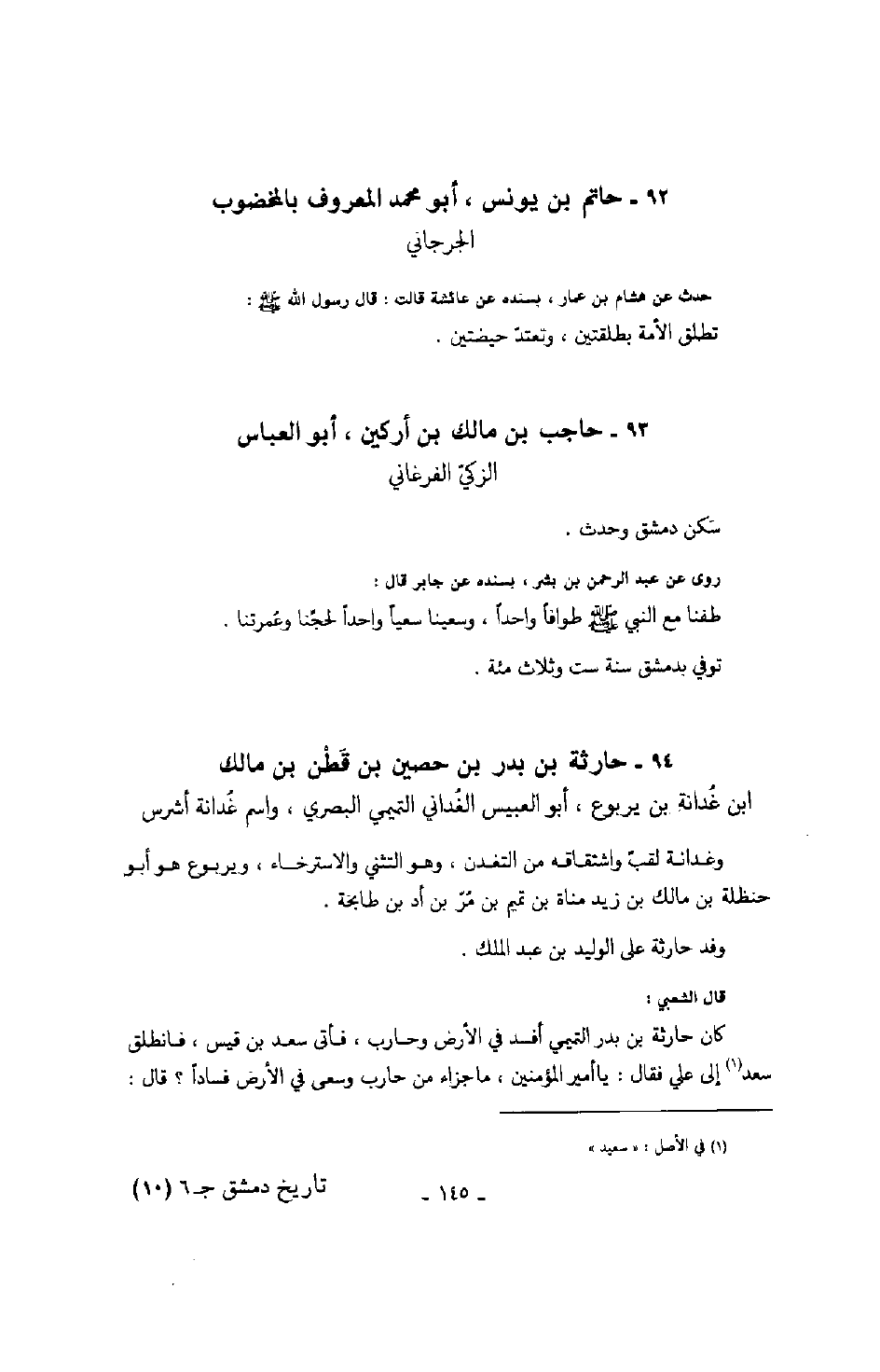 المعروف بالمخضوب الجرجاني حدث عن هشام بن عمار، بسنده عن عائشة قالت: قال رسول الله صَلَّى اللهُ عَلَيْهِ وَسَلَّمَ: تطلق الأمة بطلقتين، وتعتد حيضتين.