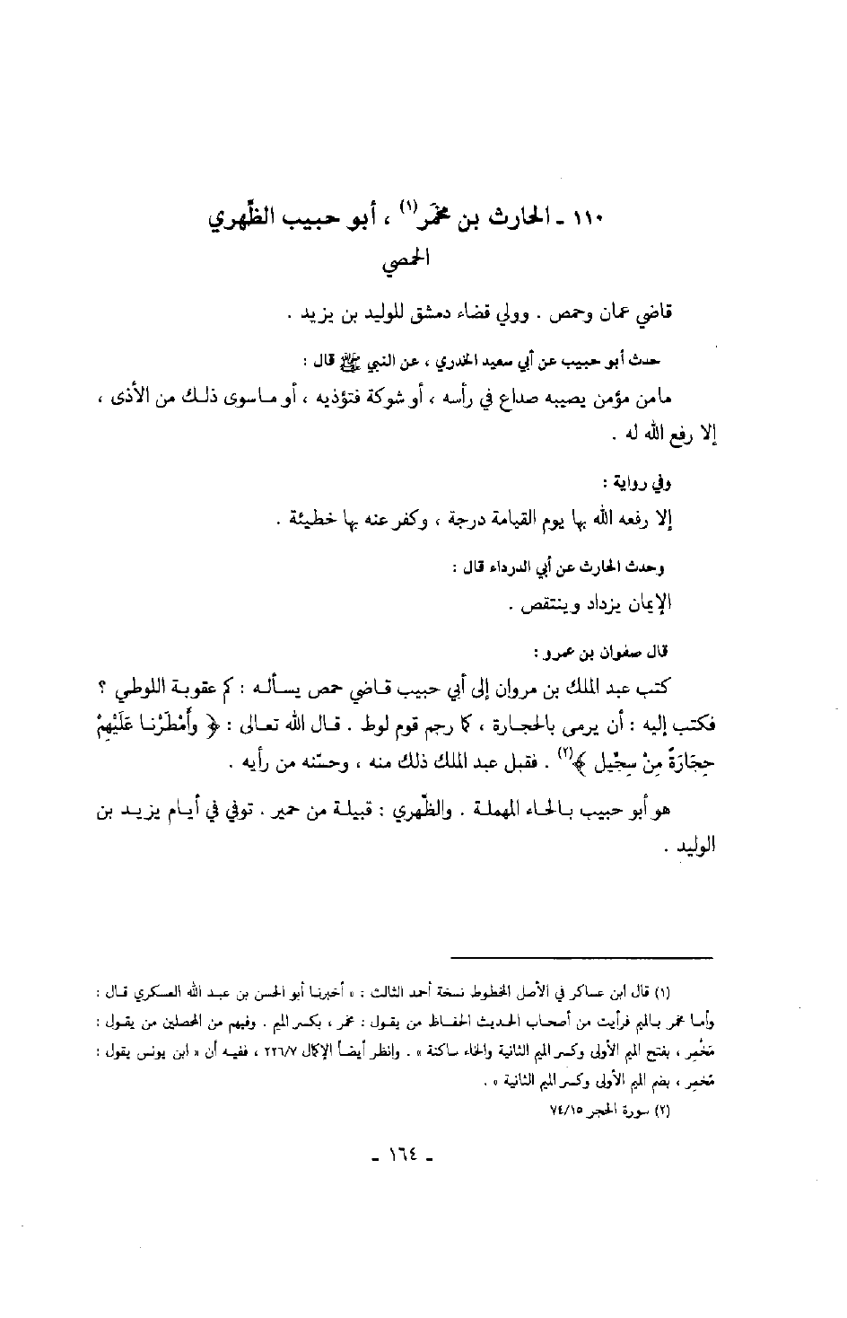 قال صفوان بن عمرو: كتب عبد الملك بن مروان إلى أبي حبيب قاضي حمص يسأله: كم عقوبة اللوطي؟ فكتب إليه: أن يرمى بالحجارة، كما رجم قوم لوط. قال الله تعالى: " وأمطرنا عليهم حجارة من سجيل ". فقبل عبد الملك ذلك منه، وحسنه من رأيه.